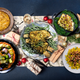 Each dish is plated in a signature gold platter, with plates, cutlery and menu tags.